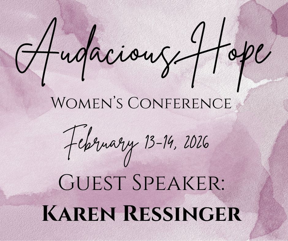 We are blessed to be hosting a women’s conference February 13th and 14th, 2026. Guest speaker, Karen Ressinger, will be speaking about worship in a study entitled “Audacious Hope”.